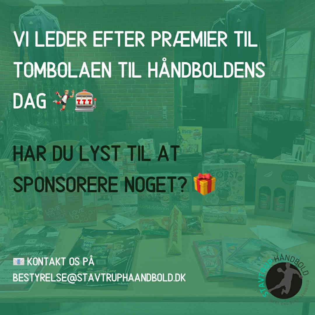 Hvis du arbejder et sted eller kender nogen, der kunne have lyst til at sponsorere noget til tombolaen så tag endelig fat i en fra bestyrelsen, enten på SoMe eller i hallen.
